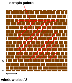 Sum of squared differencesTo calculate the distance of two images, all you need to do is to calculate the difference of each corresponding pixel and sum all the differences to get the distance. Let the color of two corresponding pixels be (R1, G1, B1) and (R2, G2, B2). Then the difference is (R1-R2)2 + (G1-G2)2 + (B1-B2)2. To give more weight to the nearby pixels, remember to multiply the corresponding value of the Gaussian kernel at each pixel. Implementation DetailsStep 1Easy. Step 2This step is easy, the boundary points of the current synthesized image are all the pixels that 1. its color is equal to the background color, and 2. there exist one or more pixels in its 8-neighbour that is not a background pixel Step 3.1This step is the core part of the algorithm and you may spend most of your time on it. First, you need to know where does your sample point come from. As stated in the paper, the sample points are simply all the pixels on your original image. To avoid exceeding the image boundary when calculating the distance, you can exclude the pixels within half of the window size near the boundary.